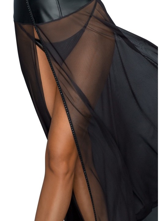 Bellissimo vestito effetto bagnato con powernet Con decorazione scintillante di pietre preziose Con un alto spacco sul davanti e sul retro Elastico e morbido per una vestibilità comodaStile stravagante per apparizioni provocanti!Abito lungo fino alla caviglia realizzato con una miscela di potere effetto bagnato (corpetto) e powernet trasparente (gonna). Il corpetto aderente ha una scintillante decorazione in pietre preziose sul davanti. Scende da un lato e prosegue lungo la gonna dove si trova lo spacco. C'è anche una fessura nella parte posteriore nel mezzo.Gonna 85% poliammide, 15% spandex; corpetto 80% poliammide, 20% spandex.